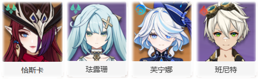 [5] 简易输出手法(以恰斯卡、班尼特、芙宁娜、申鹤为例):芙宁娜元素战技元素爆发,申鹤元素战技长按元素爆发,班尼特元素战技元素爆发,恰斯卡元素战技强化重击4次,元素爆发,循环