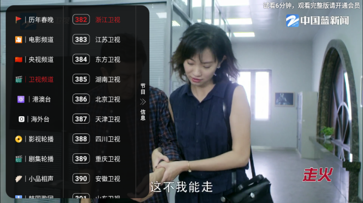 3、点击频道可以唤醒频道菜单,在上面可以自由选择你想要观看的电视节目。