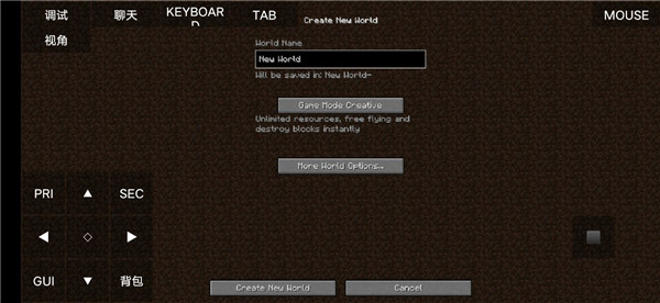 7、进入此界面后选择你的游戏模式以及名称并点击下方的“Create New World”。