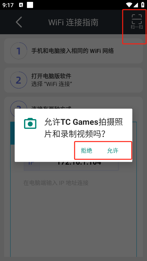4、点击扫码进行扫一扫操作即可连接