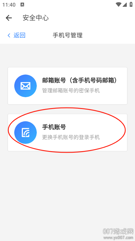 8、点击手机账号,选择更换手机账号就可以完成换绑了