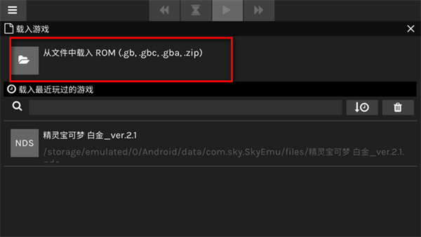 1、打开SkyEmu模拟器后点上方的载入游戏,可以选择gb,gbc,gba及ds游戏。