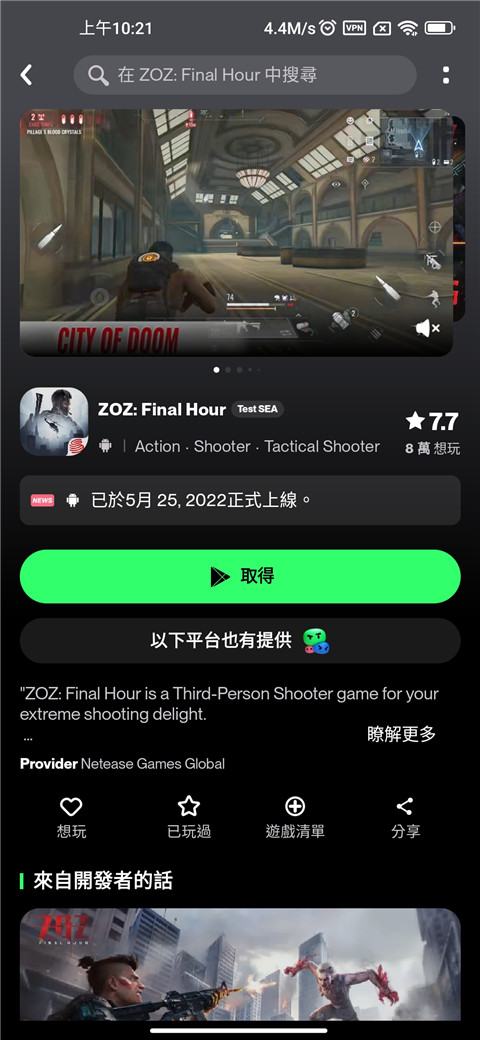 4、直接点击获取游戏即可。