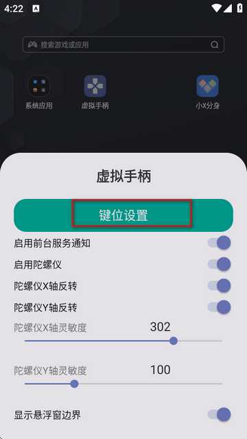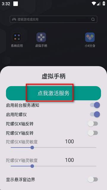 3、当用户的物理手柄用不了,就连接小鸡虚拟手柄app使用虚拟手柄继续游戏。