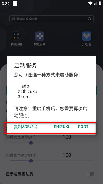 3、有三种激活方式,adb,shizuku和root,选择一种。