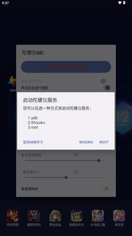 1.可以使用桌面图标长按后显示的shortCuts来开启/关闭视角控制服务。
