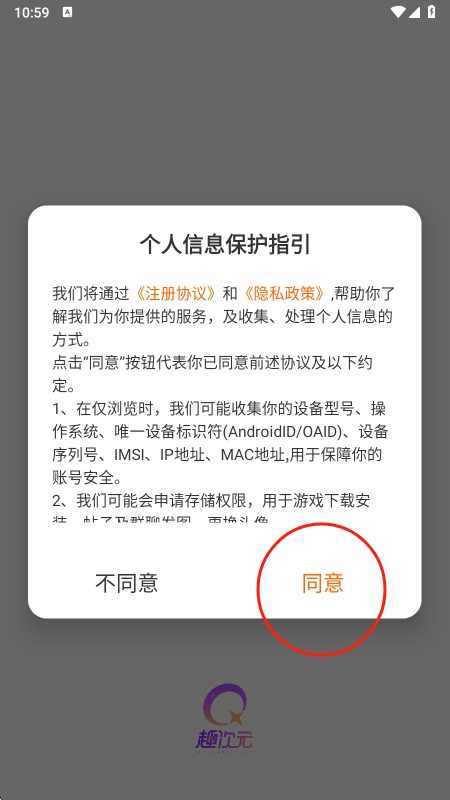 1、用户首先在本站下载趣次元app,查看并同意隐私政策与用户协议。