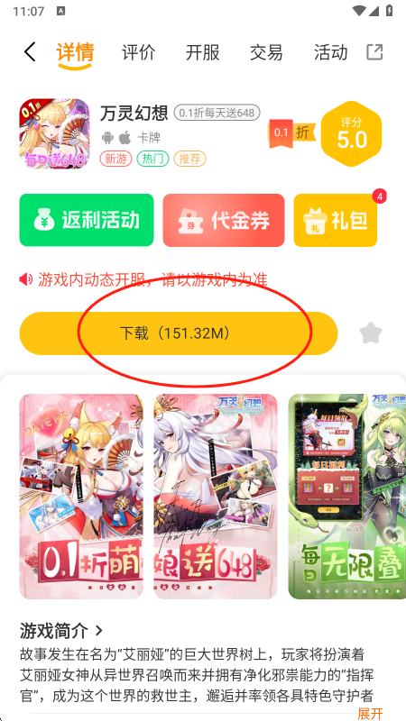 4、点开想玩的游戏资源以后,点击“下载”即可。