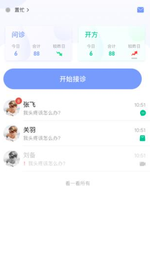 【在线接诊】完成备案审核后,医生即可以在线接受用户问诊,包括图文和视频两种问诊形式;