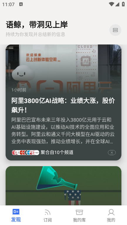 语鲸旨在让用户轻松快捷地在手机上阅读资讯。 支持订阅信息来源,并将这些信源发布的内容及时展示给用户。语鲸会聚合同类文章,全面、聚焦地呈现事件全貌,不遗漏关键信息。 借助强大的 AI 能力,语鲸会将公众号文章、网页、论文、研报等内容,以新的形态呈现给用户。帮助用户快速定位兴趣点,随时深挖细节