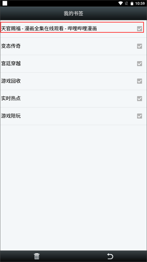 (2)勾选你要删除的书签,最后点击下方的垃圾筐图标就可以了。