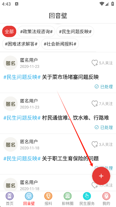 3、本地用户可以发布问题,点击右下角的+号即可