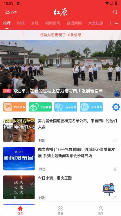 大美红原app是一款专门为本地打造的新闻服务平台,在这个平台用户可以获取全面的本地资讯信息,随时了解相关动态,同时您还能够办理便民服务等等,功能都是比较的全面的,有需要的朋友现在就来下载使用吧!