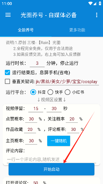 光圈养号助手是葫芦侠光圈大佬自制的养号助手工具,这是自媒体运营必备的软件,支持全平台的养号助手,一键释放你的双手,可以额帮助你养号活跃度,亲测有效,功能强大,让你的账号变得活跃,不再是黑号,提升你的账号权重的软件
