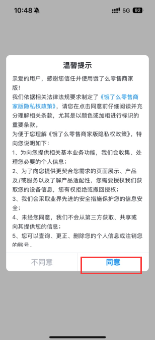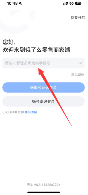 登录应用:打开饿了么零售商家版app,输入账号密码并登录。