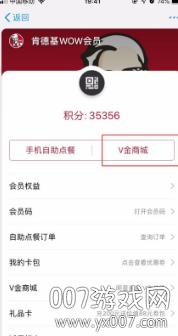 1、进入肯德基会员页面,点击V金商城,进入积分页面。