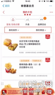 - 美食天地:可以按时段和品类查看各种肯德基美味;