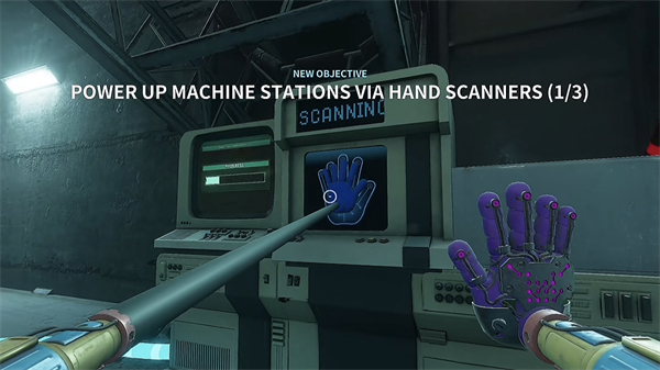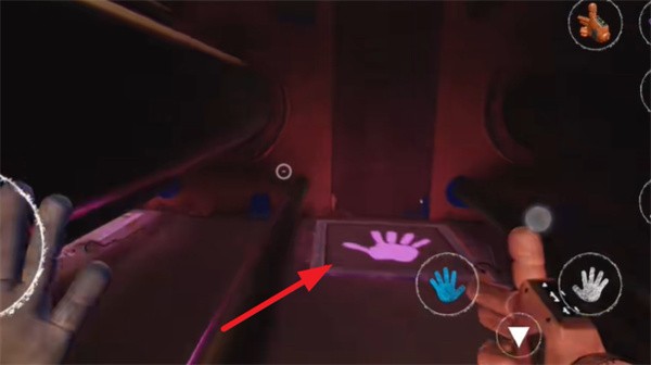 6、开门之后走里面还会有一个开关给他拉下来,往前走进去用蓝色手臂互动一下前面的开关,这里要触发三个开关才能有电流打通出口