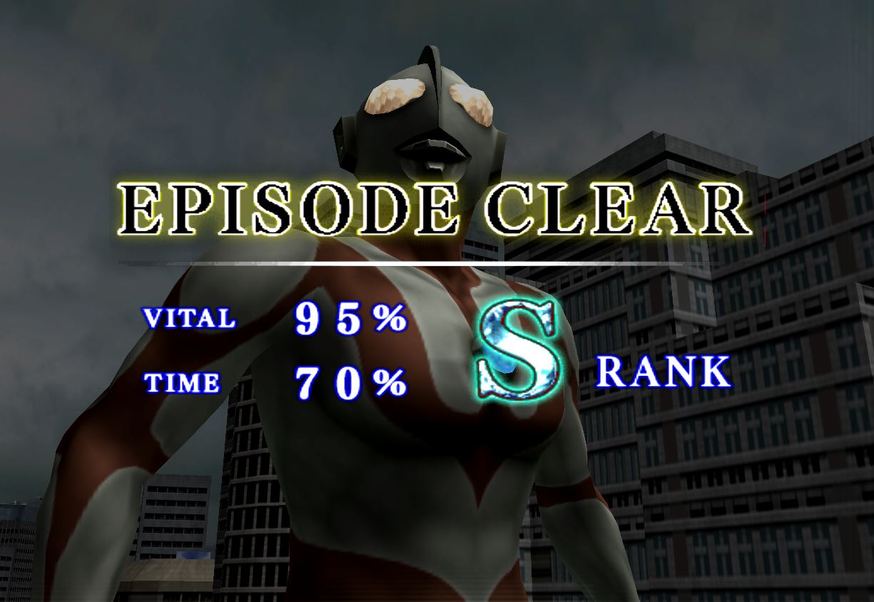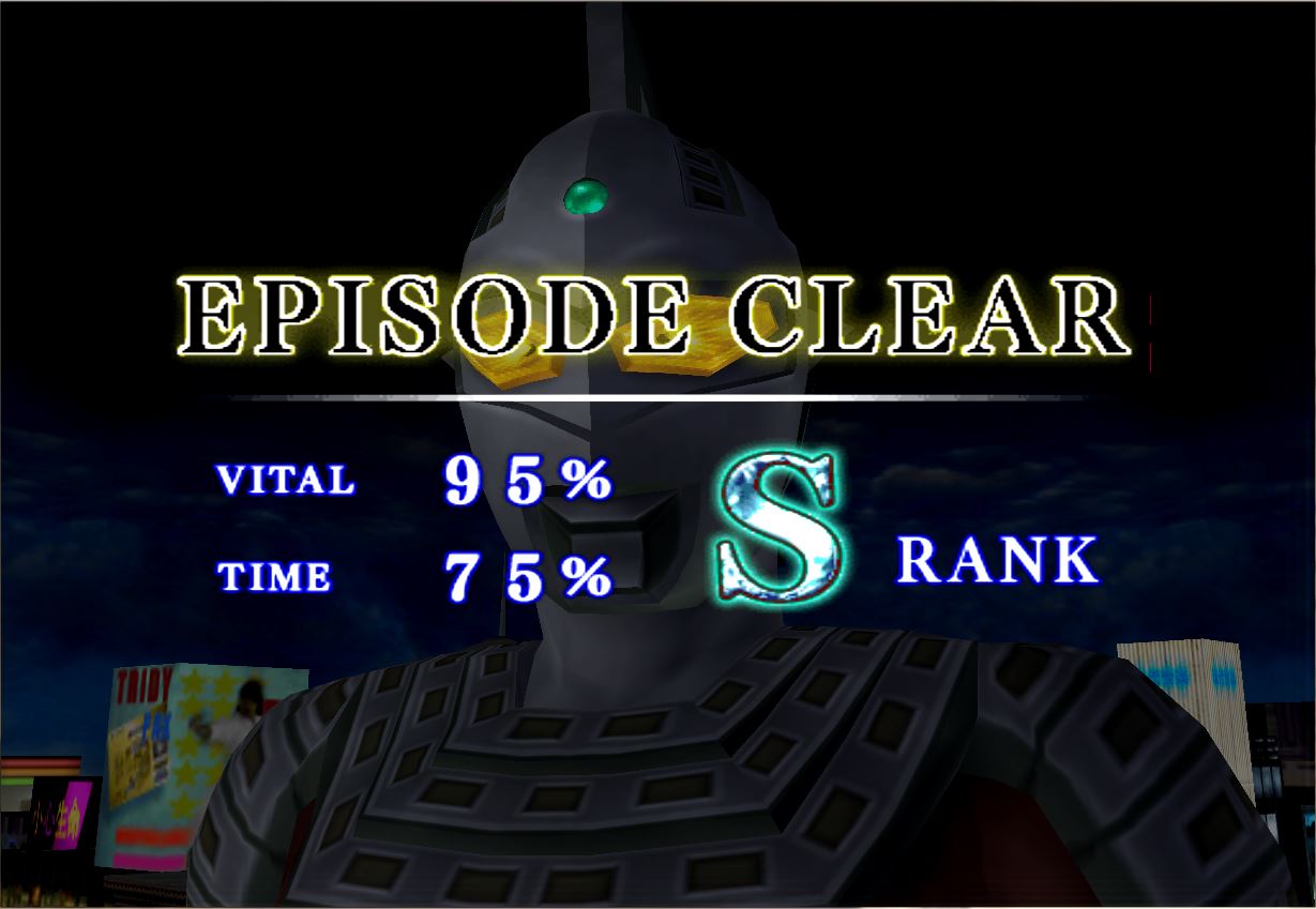 一开始是打飞船游戏,将飞船打到50%后,就成了赛文和巴尔坦星人的决斗,打的时候尽量用前+O,在2:30左右就赢了,但不知道为什么有时S条件都达到了却是B