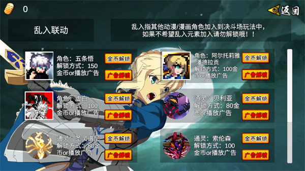1,五条悟获取有两种方式,第一种是在乱入界面花150金币解锁或者看广告解锁