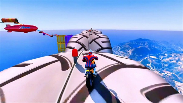 1、操作主角骑着车子快速前行,记得控制好方向。