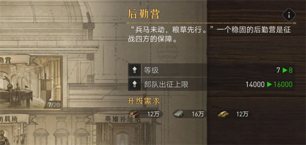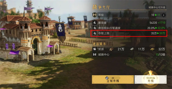 城镇中心升到12级,然后把城堡后勤科技升一下,尽可能在今天内把兵力提升到主队5万,副队4万。