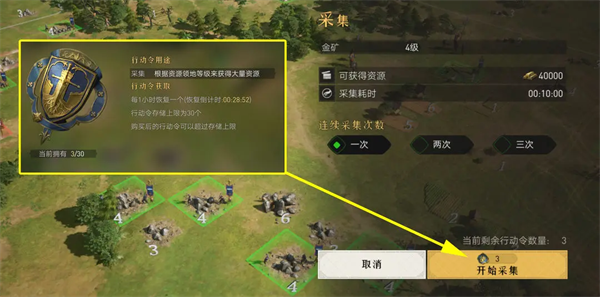 可对已占领的资源领地进行采集,在短时间内获得大量对应资源。