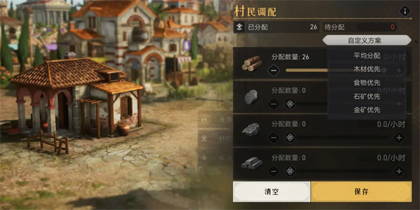 建设居民房舍后,可以调配里面的村民,按需生产四种材料。