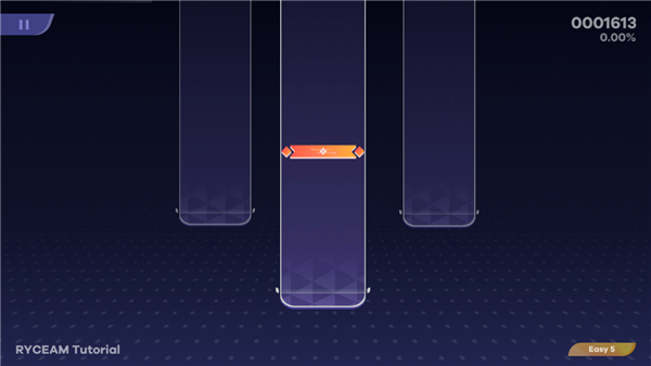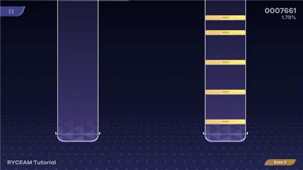 1、下图为轨道,玩家点击它将会高亮显示,之后各种音符会在轨道中落下;