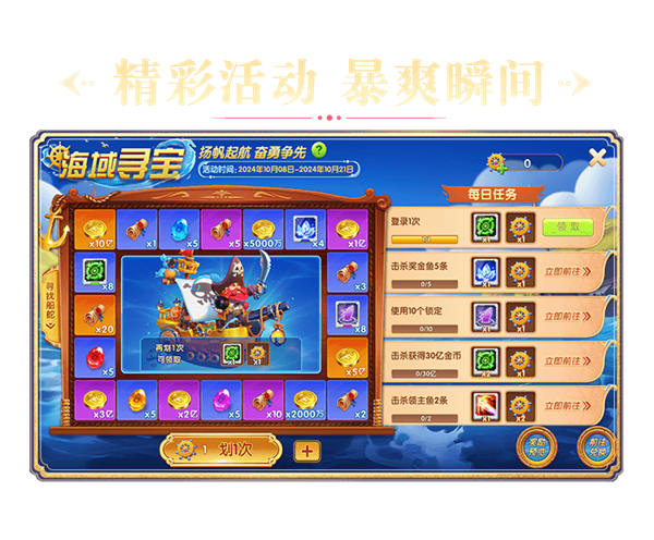 免费金币每日可领,超多好玩任务,超高任务奖励,助您一举成为捕鱼王者,羡煞众人
