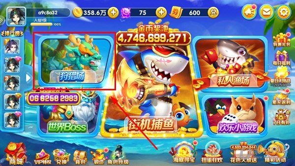一、打开乐乐捕鱼游戏,点击【狩猎场】