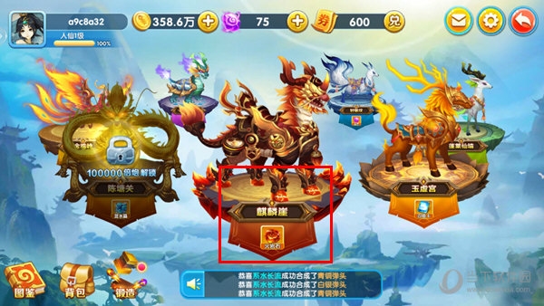 二、点击【玉虚宫】挑战【四不像】可以获得【召唤卡】