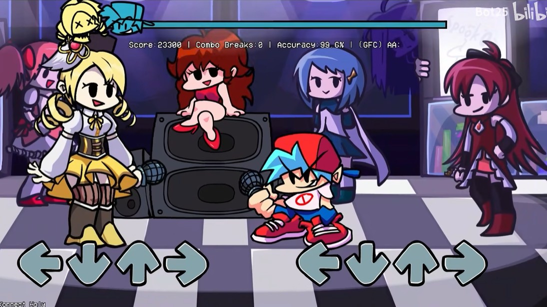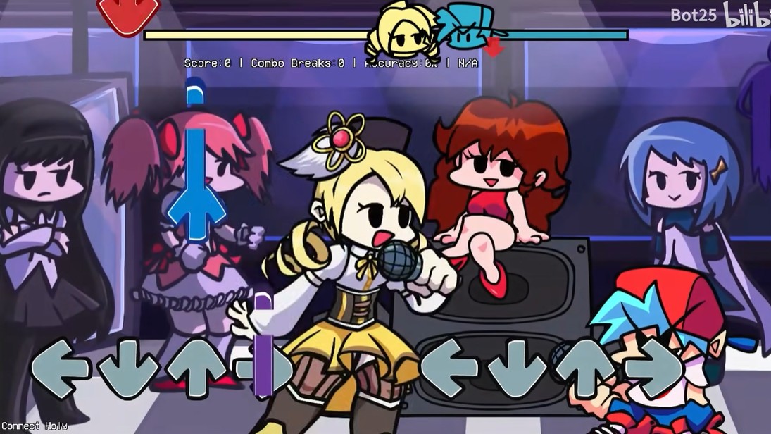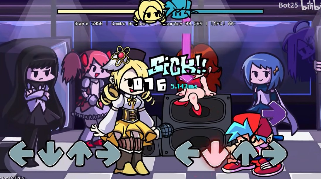 周五夜放克巴麻美模组官方版本下载(FNF:VS玛米)是一款玩家自制的音乐节奏闯关游戏,游戏在爆火游戏“周五放夜克”的基础上咪添加了“魔法少女小圆”动漫的角色——麻美,而且麻美是作为最终BOSS出现的,等着玩家和她进行一场音乐领域的较量。游戏采用的是经典下落式的音符节奏玩法,只有准确的点击每一个音符才能得分。