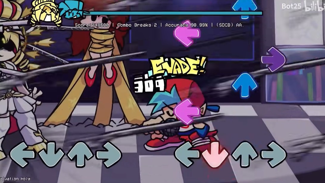 - 小心他的步枪射出的子弹,这些子弹会在音符的中间射出,在正确的时间点击它来躲避它们!