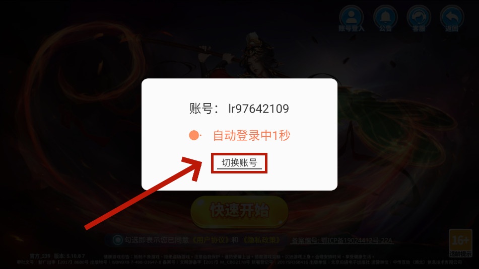 下载安装并打开小玛丽捕鱼,点击右上角账号登入