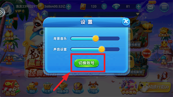 在趣游捕鱼游戏大厅点击如图右上角按钮
