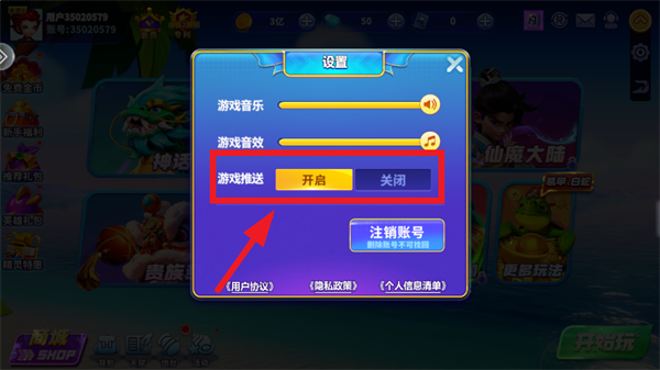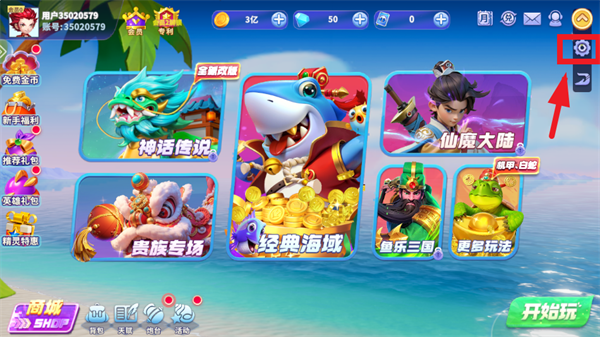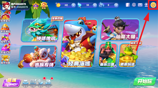打开捕鱼炸翻天,进入游戏大厅界面,点击右上角黄色小按钮