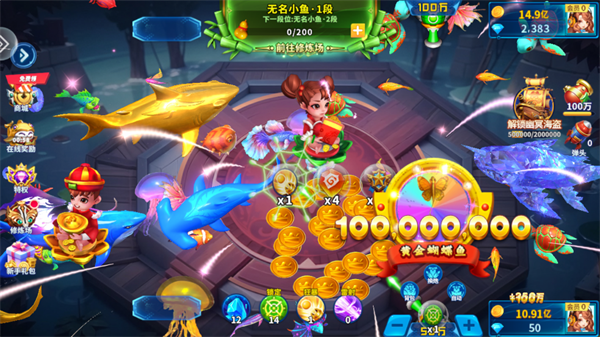 劲爽炫酷炮台和华丽绚烂翅膀,让您在捕鱼的世界惊艳四座!