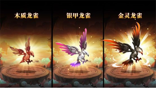 “龙雀”共分为木质龙雀→银甲龙雀→金灵龙雀三个阶级。龙雀有着不错的机动性,属于战场上唯一的飞行兵种,开战时,会优先对敌方英雄进行俯冲攻击,并降低敌方英雄防御力。