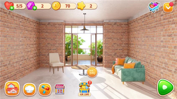 5、打造家庭餐厅,在房子里设计不同的区域,餐厅装潢布置需要金币,厨师继续努力。