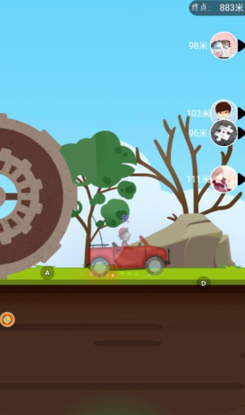 1、双手点击屏幕即可让赛车启动,点击频率越快赛车速度越快。