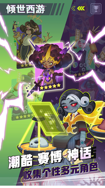 在这里你将遇到各种充满“赛博元素”的西游、上古神话传说人物,与他们一起探险和成长,同时感受不同角色间独特的故事与羁绊,通过不断对决提升最终打造独属于你的“倾城战队”!