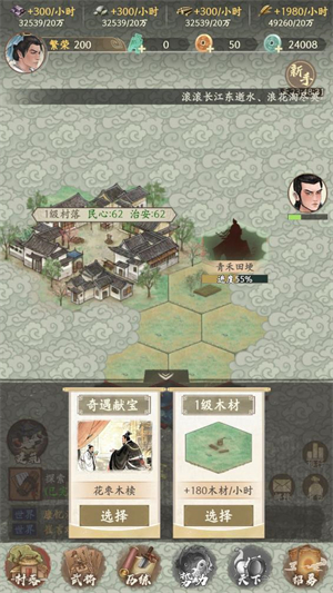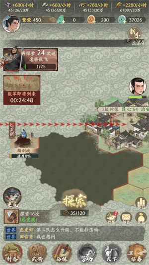 5、不断探索来获得更多的资源,招募更多的武将来打造属于你的城镇。
