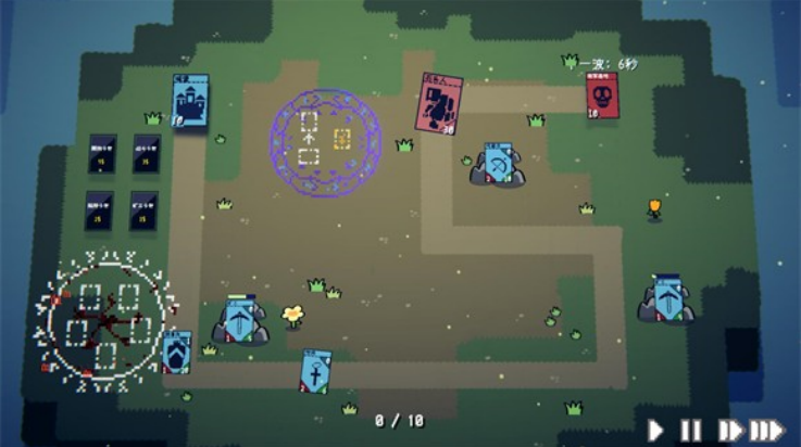 3、游戏的卡牌种类很多,有多种不同颜色的卡牌用于不同种类的防御。