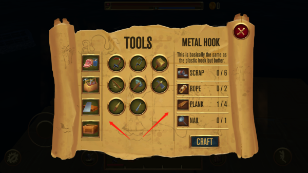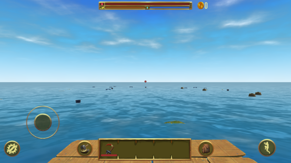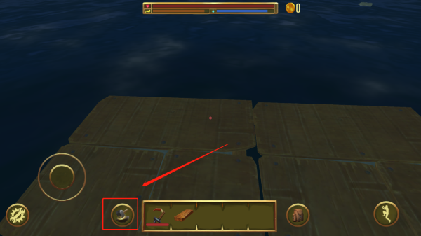 2、进入游戏之后你会出现在一块浮木上,这个时候就可以通过工具打捞海上飘荡的物品,制作以供生存的工具了哦。