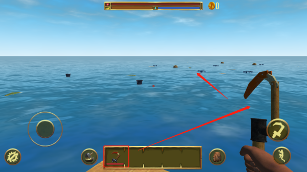 4、就像图上的这个样子就可以将海面上飘荡木板拾起了。