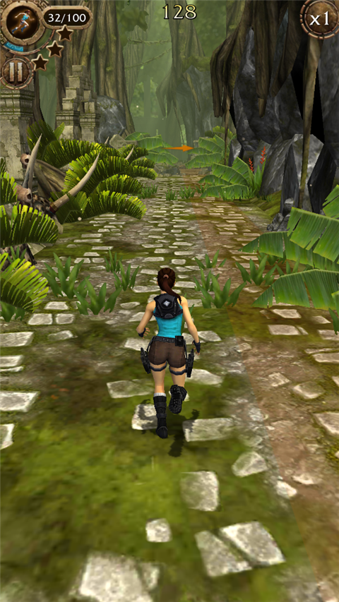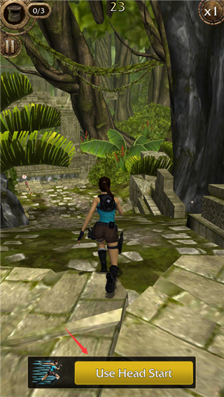 2、同样是上下左右划屏控制着劳拉在遗迹中一路狂奔,躲避陷阱并沿途收集考古道具。