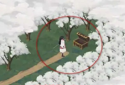 4、施展轻功越过荷花阵来到对岸打开宝箱即可获得旧玉佩。
