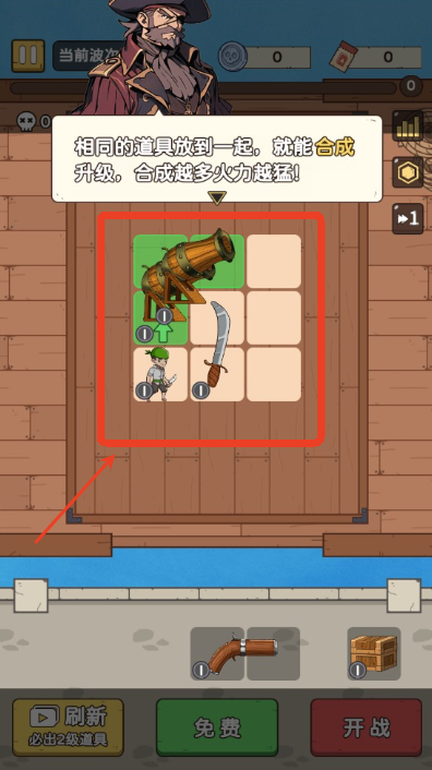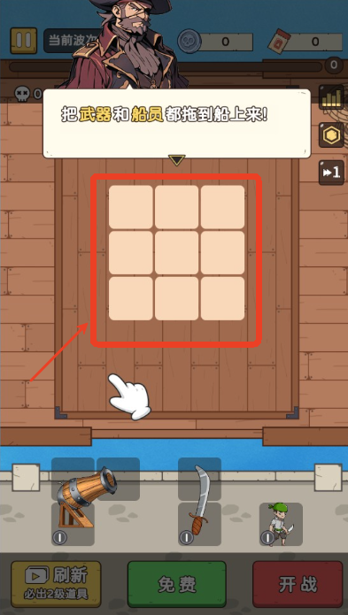 2、在游戏内根据指引把武器和船员都拖到船上的格子中。