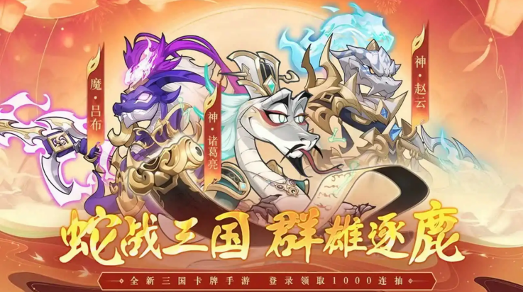 1、蛇战三国,群雄逐鹿:全新三国卡牌手游,登录领取1000连抽。